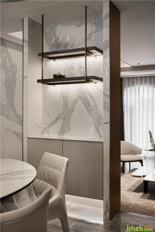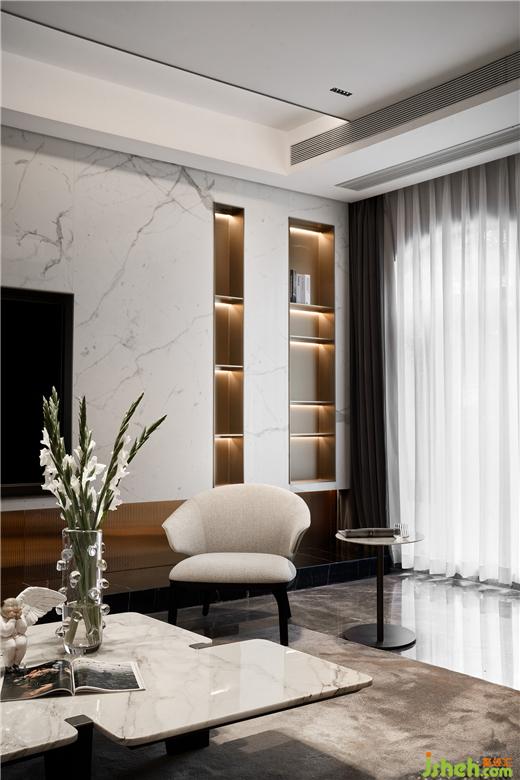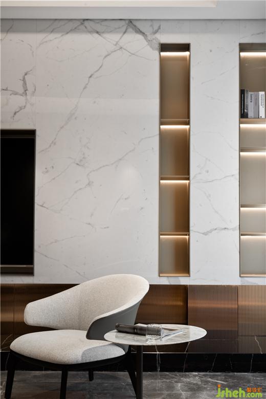 別墅設計以深咖色木飾面與白色大理石為背景搭建生活舞臺:統(tǒng)一的對話、均勻和諧的色調與材質,規(guī)整中藏著不規(guī)則的驚喜。彰顯內斂沉穩(wěn)的品格,更反映了屋主對生活品質的高級訴求。