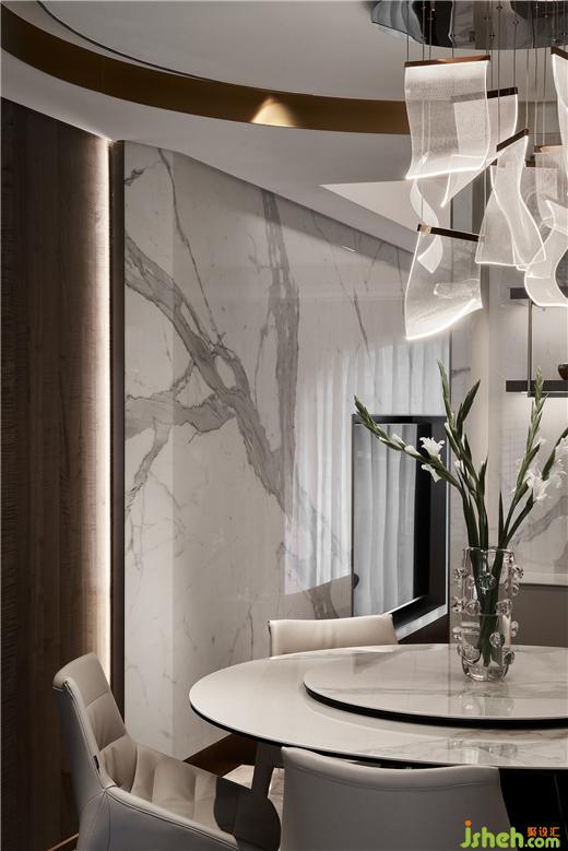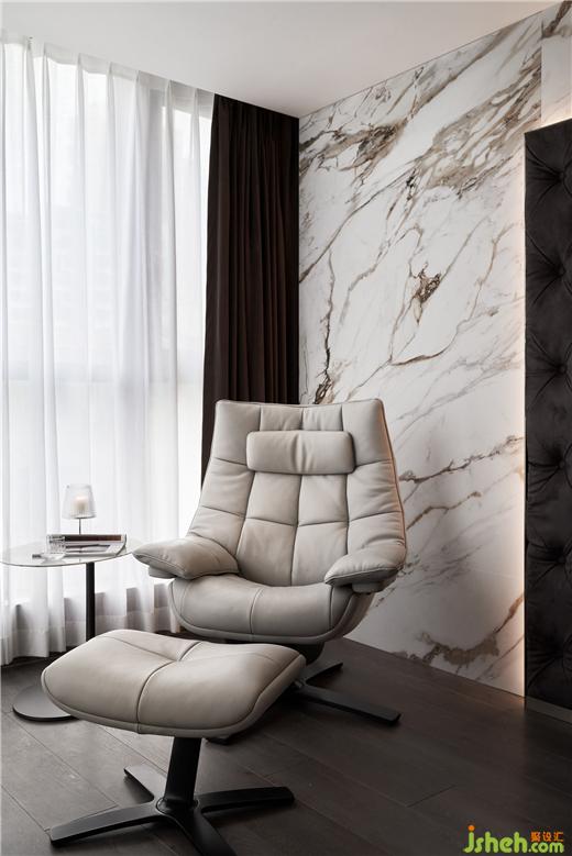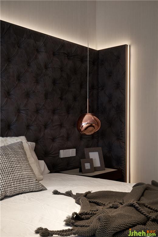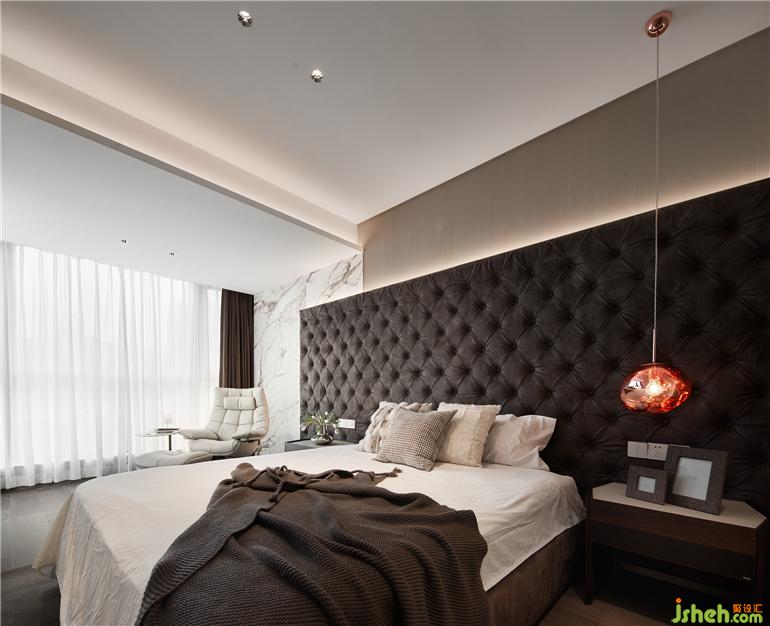 無主燈設(shè)計已然成為現(xiàn)代居所營造氛圍感的首選,別墅設(shè)計造型背景及天花四周的隱藏?zé)魩渡涓訉庫o閑適的休憩氛圍。床頭軟包、墻體與大理石分層落錯,層次分明而相互呼應(yīng),空間立體感油然而生。