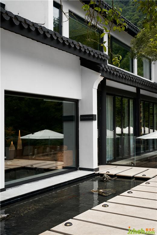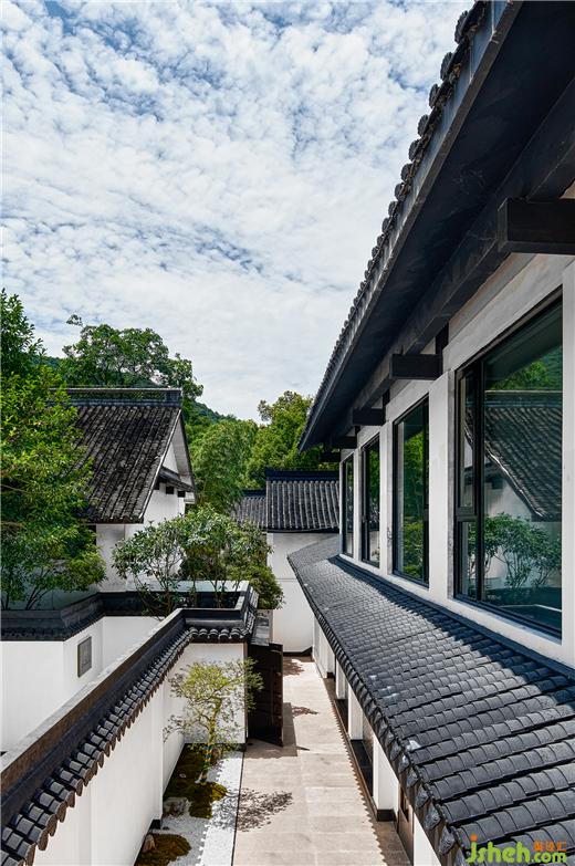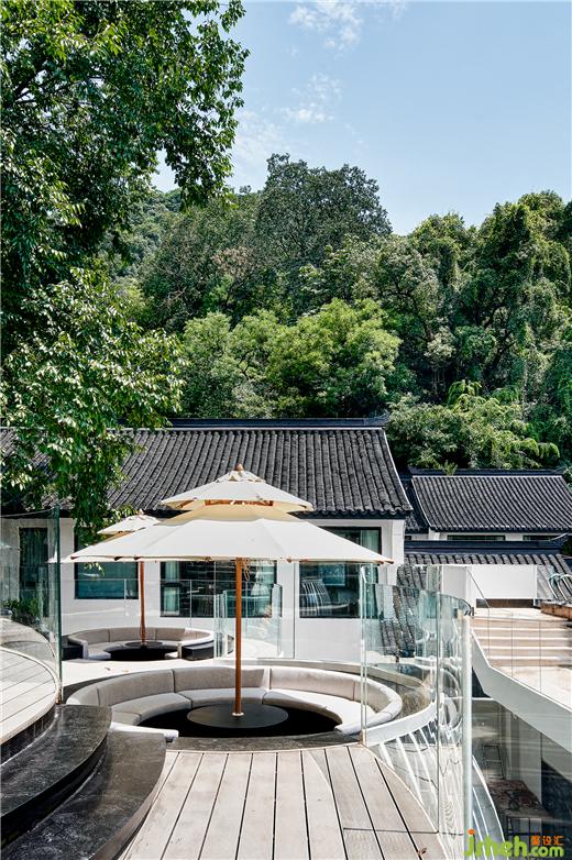 山野、茶香。被西湖群山與云海竹林環(huán)抱,五個不同的庭院因地制宜,杭州度假酒店設計梳理出自然流動的空間動線:
