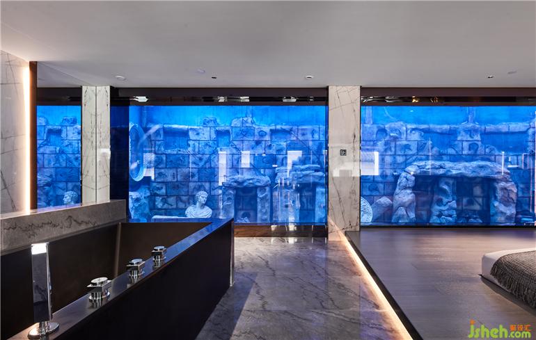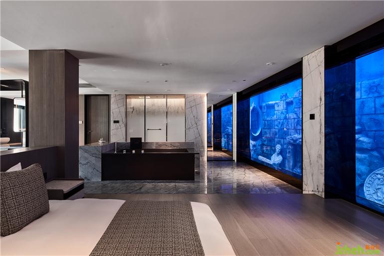 整個(gè)客房采用同色系的不同材料營(yíng)造出和諧的空間氛圍感。這種把海洋世界“搬”進(jìn)客房的感覺(jué)真的很奇妙,杭州度假酒店設(shè)計(jì)擁有一整面“海底景觀”,讓你仿佛住在海洋世界,有身處“亞特蘭蒂斯”的感覺(jué)。