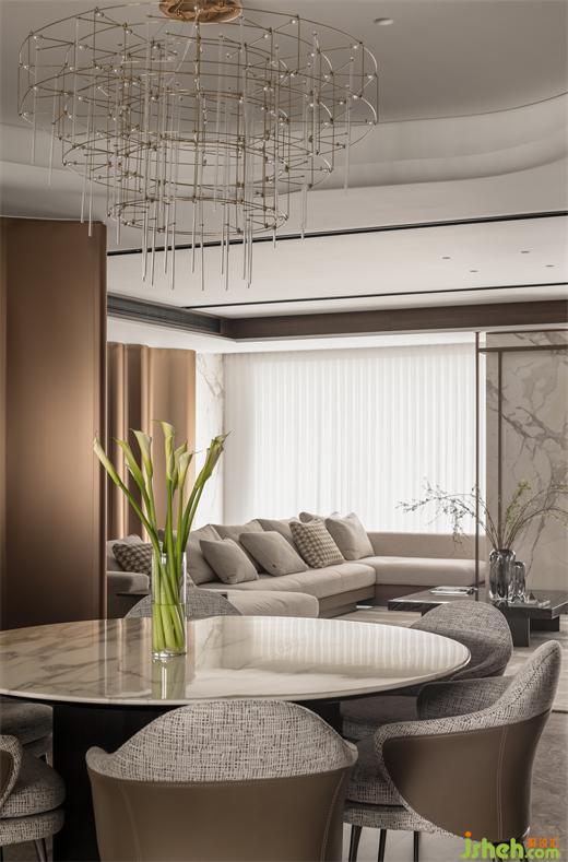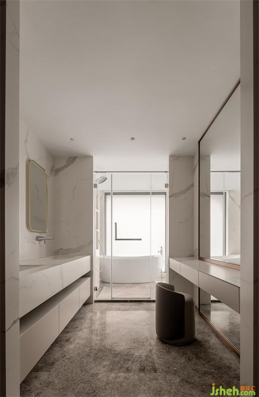 明確的功能劃分,業(yè)主夫妻與愛女的生活單元圍繞步入式衣帽間做彼此連通而又相對(duì)獨(dú)立的環(huán)繞動(dòng)線。三個(gè)臥室占據(jù)了幾乎一半的住宅空間,并都配備了高品質(zhì)的衛(wèi)生間,杭州大平層裝修設(shè)計(jì)讓每個(gè)家庭成員都能夠享有尊重與隱私,共度溫馨舒適的家庭時(shí)光。