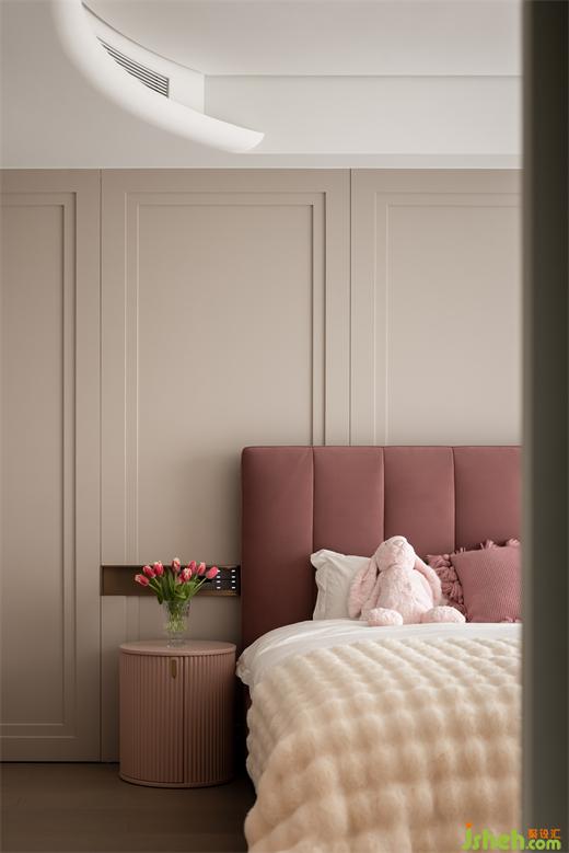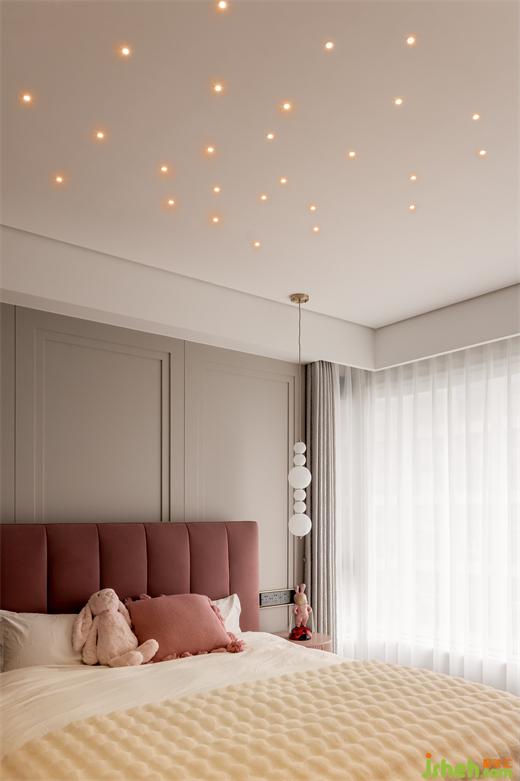 為小公主定制的夢(mèng)幻套間,帶有灰度的白色+粉色組合經(jīng)久耐看;臥室簡(jiǎn)潔的星空頂設(shè)計(jì)也恰如其分的營(yíng)造了溫馨的氛圍感。
