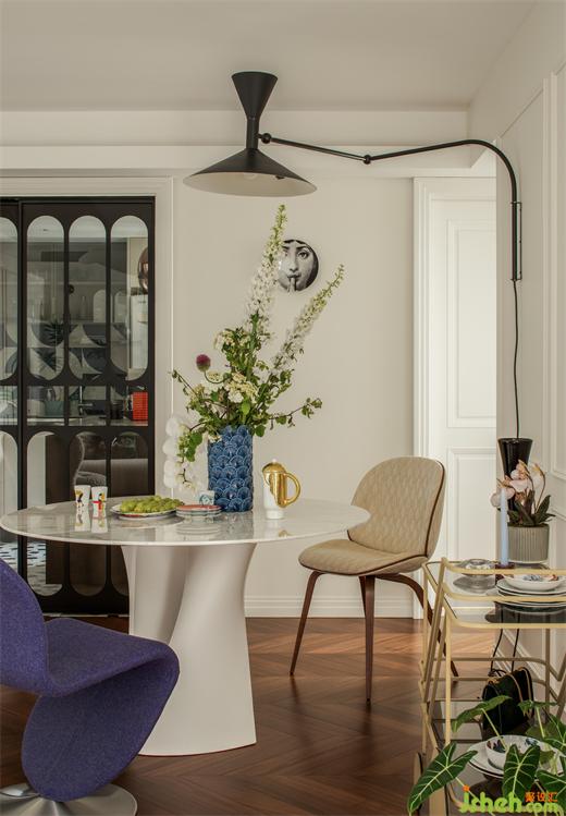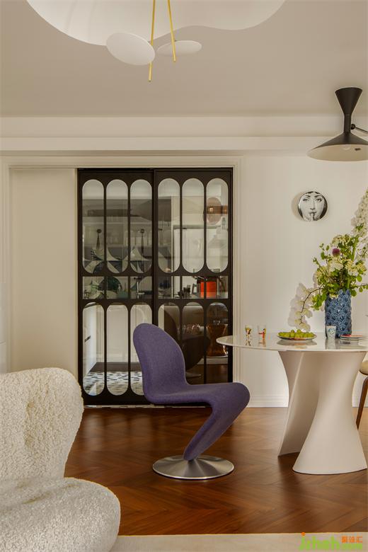 定制的移門拉開廚房的序幕。法式新家中,每一個生活的轉(zhuǎn)角都經(jīng)過了精心考慮。為了更好地融入整體氛圍,上海公寓改造設(shè)計師親自畫稿,定制了廚房法式黑框圓弧玻璃移門,復(fù)古而優(yōu)雅,開合之間不僅是門的意義,更是空間風(fēng)格的點綴。