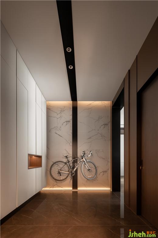 居住空間常常反映著主人的性格與氣質(zhì),踏入新家的第一眼便奠定了這個(gè)現(xiàn)代住宅的基調(diào):中贏星際豪宅設(shè)計(jì)深沉內(nèi)斂的氣質(zhì)之中不乏變化與活力。了解到這是一個(gè)熱愛(ài)騎行運(yùn)動(dòng)的家庭,我們欣賞這類(lèi)新興而有具環(huán)保意義的愛(ài)好,并認(rèn)為他們每一輛精心保養(yǎng)的愛(ài)車(chē)都有被展示與欣賞的價(jià)值。