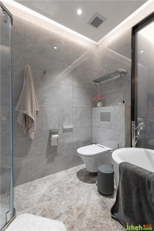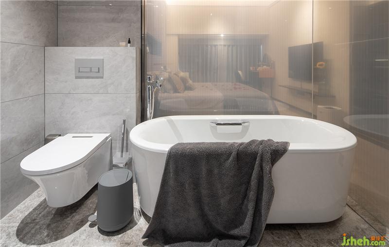 主衛(wèi)功能齊全,干濕分區(qū),采用夾絲玻璃與主臥室間隔,朦朧美盡顯!