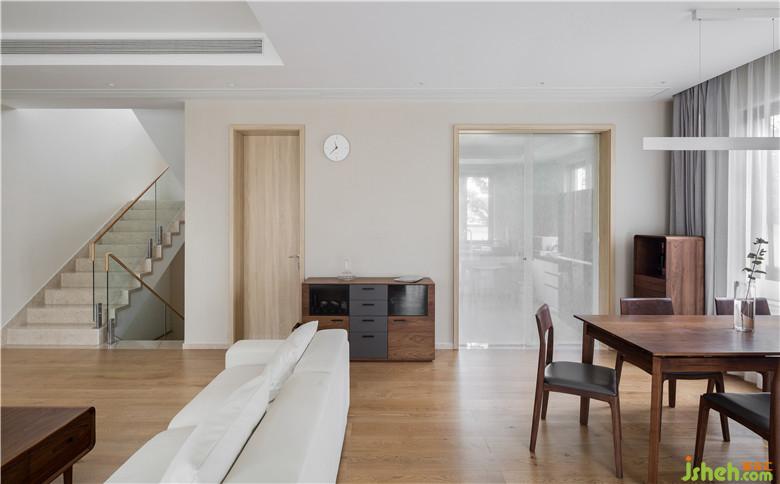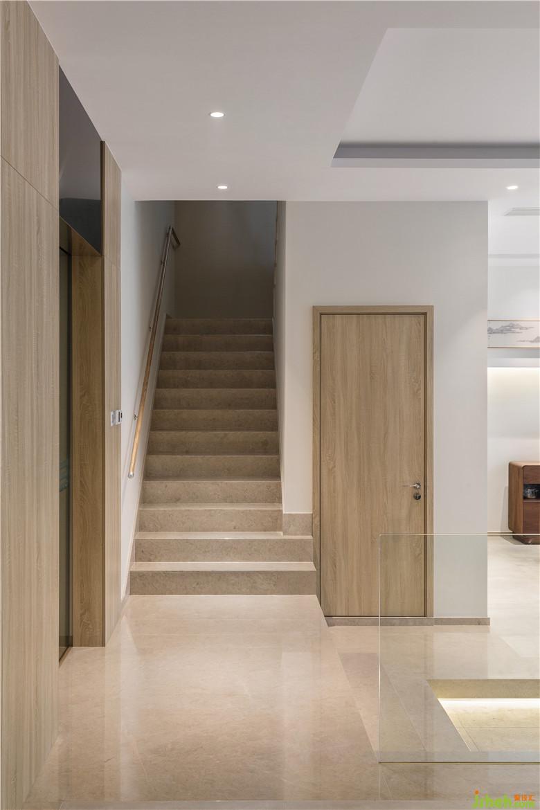 本案的材質一般選擇兩到三種主材,以木材、石材、玻璃及瓷磚為主流,常以通鋪的形式出現,一體式的鋪裝效果有助于視覺的連貫性,令空間更具有整體感。