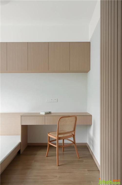 空間色彩以白色為底蘊,包容著淺色木紋紋理、沉穩(wěn)的白色肌理涂料相互作用于空間內(nèi),木質(zhì)紋路清淺帶出自然質(zhì)感。