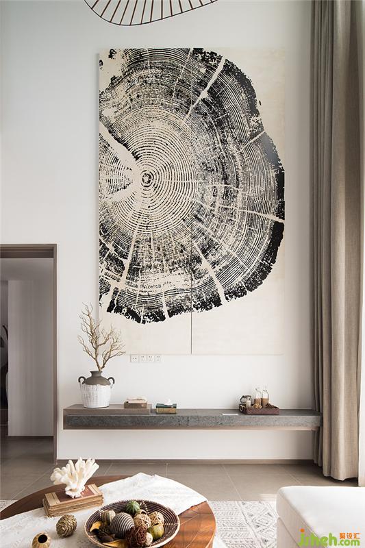 靜靜靠臥在沙發(fā)上捧書閱讀,眼睛疲乏時(shí)可抬頭觀望對(duì)面墻面上巨大的古樸樹(shù)木年輪,發(fā)呆也好、思考也好,都是獨(dú)享時(shí)間的幸運(yùn)。