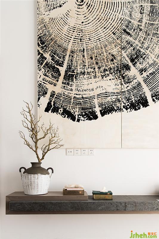 臥室中設(shè)計師選用灰麻花的基調(diào),聽似容易落入鄉(xiāng)野俗套,但采用質(zhì)感滿滿的墻壁布置與簡單大方的家紡,加以線條的捋順,一唱一和間,便讓入住者身在塵廬,也能獲得大自然的饋贈。