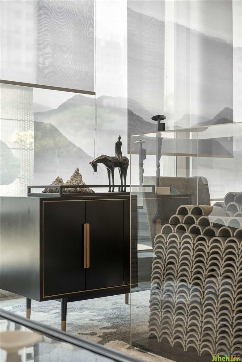 綠樹(shù)成蔭,郁郁蔥蔥,陰涼避暑,VIP洽談區(qū)便以此為靈感,玻璃窗外朦朧氤氳,裝修設(shè)計(jì)暖樹(shù)染綠的盆景增添了別致的氣氛,兩側(cè)的落地?zé)粝癫幌駷橐慌邸罢垩钡陌保?