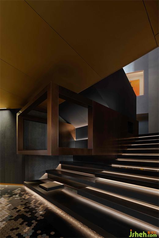 外立面開窗以紅色為靈魂,在黑夜的燈光里釋放溫馨,北京餐廳設(shè)計建筑也有了兒時房屋的記憶。