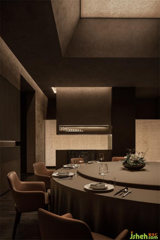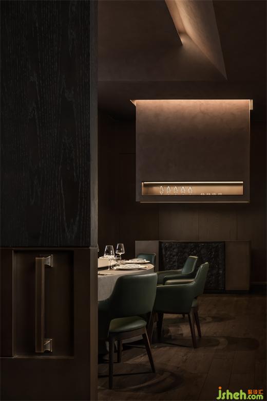 美并不是單單從“形”里產(chǎn)生,而是通過“形”引發(fā)我們?nèi)ヌ剿鞯挠∠蟆⒅X和情感的多重性??臻g的真實內(nèi)核,一定擁有可見、可品、可感的復(fù)合屬性?!胺諊小钡牧Ⅲw表達,來源于不同元素的解構(gòu)與特性化的重組,成都餐廳設(shè)計同時也來源于每一處細節(jié)的思考與精心雕琢。