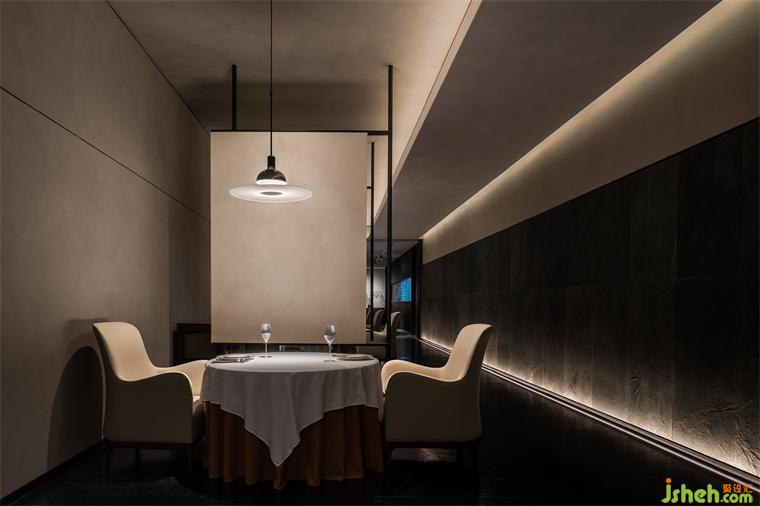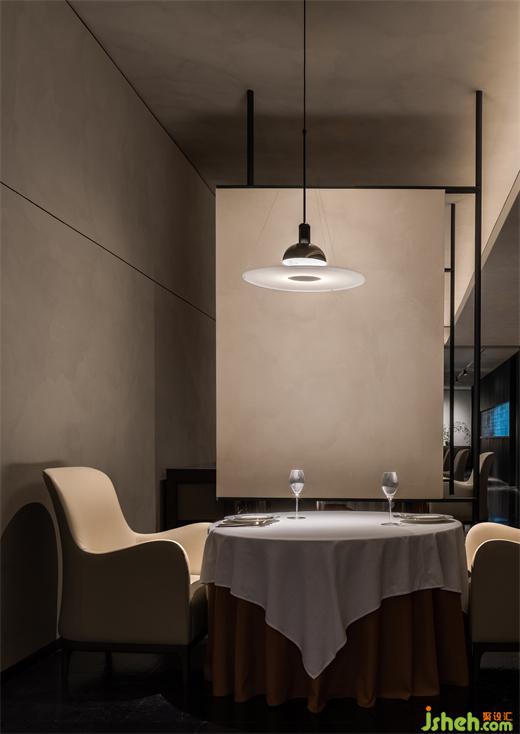 屋頂局部點綴的燈光,在照亮空間的框架結構的基礎上,照亮餐桌本身,營造出良好的就餐氛圍,也將空間主角還給餐桌上的美食,如同茉莉花語,本真誠摯。