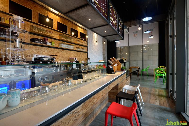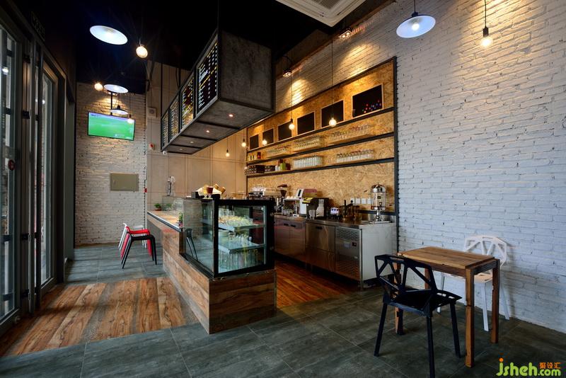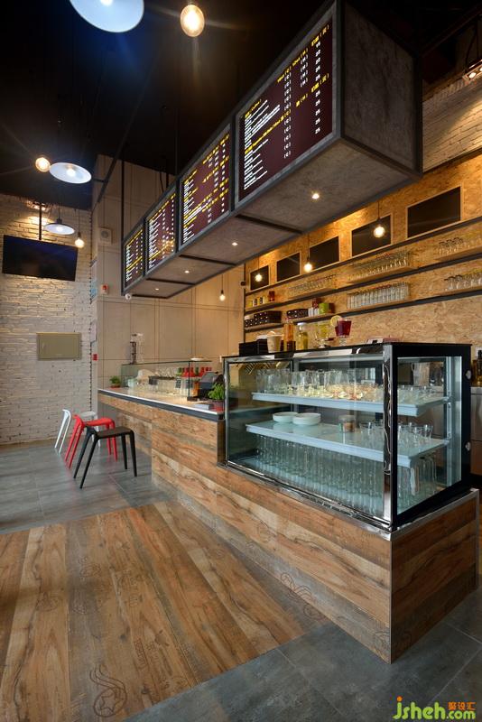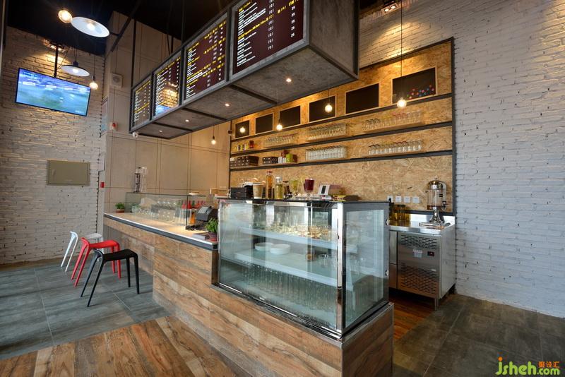 本案例的材料基本上以奧松板、紅磚做舊、鋼材、水泥板、硅酸鈣板、玻璃、乳膠漆和仿木地磚、水泥地磚等等來運(yùn)用來打造。首先,室內(nèi)設(shè)計(jì)師在門頭運(yùn)用了水泥板作為基調(diào)配上白色的LED照明的Loog,每當(dāng)夜晚降臨時(shí)刻門頭便發(fā)出耀眼的光芒,時(shí)刻提醒著人們它的品牌功能。服務(wù)臺(tái)位于地中央以鋼結(jié)構(gòu)為基礎(chǔ)表面是仿木地磚飾面,臺(tái)面運(yùn)用白色石英石和玻璃相結(jié)合,給人以衛(wèi)生、安全之感。服務(wù)臺(tái)上面的燈箱是鋼結(jié)構(gòu)骨架加上水泥板材質(zhì)給人一種強(qiáng)烈的工業(yè)風(fēng),燈箱運(yùn)用LED燈管照明,節(jié)能環(huán)保是設(shè)計(jì)的主題,最大限度減少業(yè)主的運(yùn)營成本。服務(wù)臺(tái)后面的背景是以奧松板為主體配上鋼結(jié)構(gòu),使之與磚墻、服務(wù)臺(tái)相對(duì)應(yīng)進(jìn)行強(qiáng)烈的對(duì)比。白色的磚墻木色的背景、鋼筋混凝土的原始結(jié)構(gòu)、水泥地磚之間的色彩上、材質(zhì)上之間互相穿插,形成了強(qiáng)烈的對(duì)比構(gòu)成了現(xiàn)代氣息非常濃烈的工業(yè)風(fēng)格的歸本主義。這一做法重新定義了原始建筑結(jié)構(gòu)和工業(yè)文化的含義,使工業(yè)建筑物不再是丑陋的廢墟,而是如夢(mèng)如幻的風(fēng)景來供人們欣賞。使得顧客來此地消費(fèi)仿佛置身于一個(gè)美麗的新世界,爭強(qiáng)了顧客與室內(nèi)空間的互動(dòng)感。