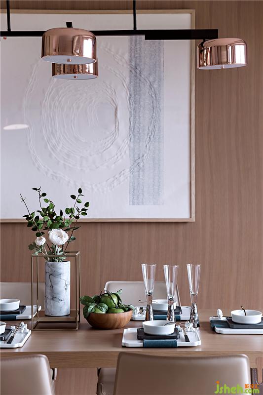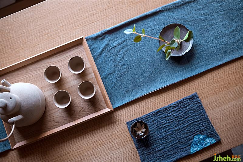 窗外的庭院將三樓主人房相擁與自然之間,房間延續(xù)原木素雅的基調(diào)與陳設(shè)品自然和諧的保持著某種平衡,重新解讀物料的本質(zhì),演繹再造自然。休閑區(qū)與床之間設(shè)立了一桌案臺,適當(dāng)?shù)膭澐至丝臻g的尺度,似離而合的延續(xù)了風(fēng)格脈絡(luò)。樣板房設(shè)計