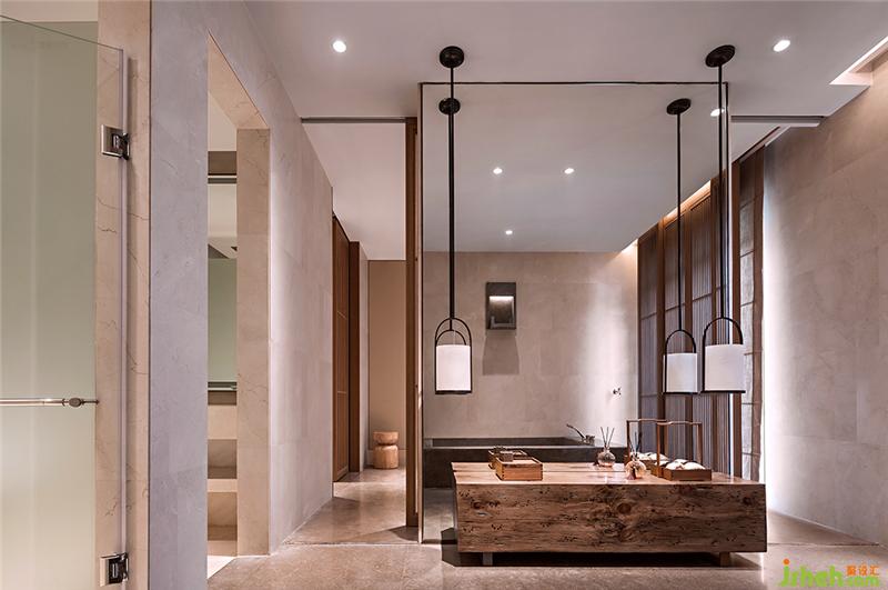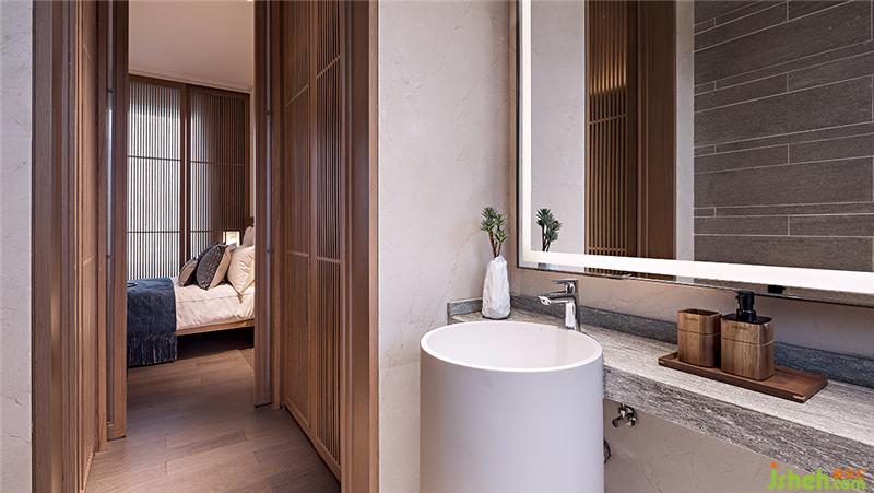 浴室以最少器物的干涉,實現(xiàn)自然之美。光影與大面落地鏡將空間延伸,創(chuàng)造靜謐閑暇的體驗感。