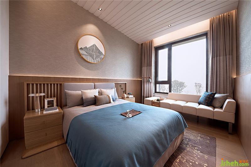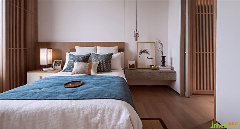 純粹、自然、舒適、愜意,木質(zhì)結(jié)構(gòu)糅合進簡凈的空間。原木和輕柔的布質(zhì)的床品,麻白和雅藍的配色組合,素雅清爽。大理石橫置床頭柜的輕暖質(zhì)感與木質(zhì)床頭,折射出生活宜人的溫度,令處于其中的人身心得到放松。樣板房設(shè)計