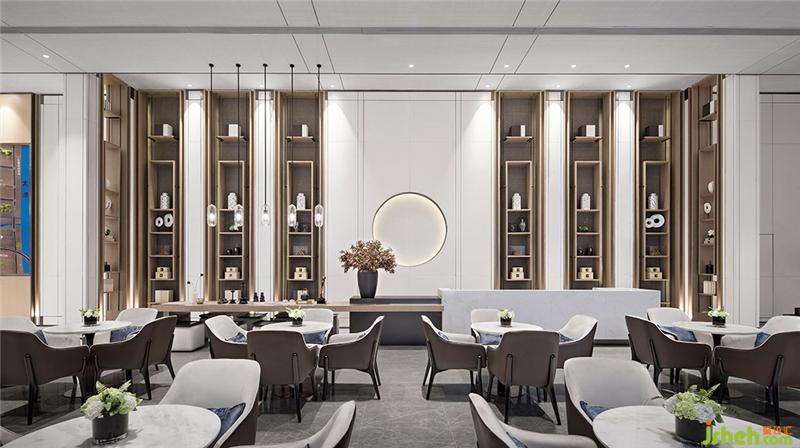 本案項目地處江蘇宜興市宜官公路南側(cè)與錢墅蕩路東側(cè)交叉口,踞東氿,享繁華,外攬東氿湖盛景與雙水岸風華,內(nèi)享近3萬方新中式意境園林?;凇笘|方院境」的項目定位,在項目銷售中心的空間設(shè)計上,EHOO易虎設(shè)計團隊以中國山水畫為背景,通過提取具有代表性的傳統(tǒng)元素和現(xiàn)代元素進行藝術(shù)融合,打造出高遠、深遠、平遠的詩意空間特質(zhì),大繁至簡,在有限空間內(nèi)延伸出無限的意境,以現(xiàn)代東方的設(shè)計手法,詮釋新中式的氣質(zhì)美學生活。會所設(shè)計