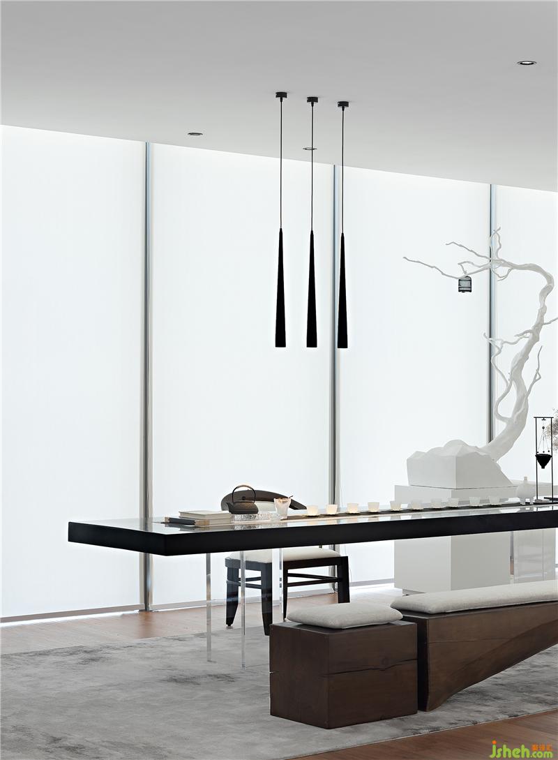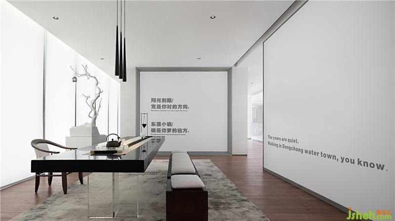 茶藝室延續(xù)了展示中心簡約素雅的風格,以極簡的白色鋪墊空間的基調(diào),將茶道的禪意之美融入現(xiàn)代的表達手法,實虛結(jié)合,化繁為簡。設(shè)計師借鑒鉆石元素的特性,充分利用光影營造色彩素雅,格調(diào)清新,意境優(yōu)美的水墨山水畫境。