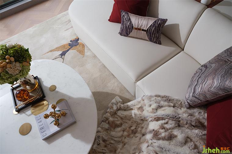 在傳統(tǒng)文化中,燕子是吉祥的象征,燕子來家里筑巢預(yù)示著主家安定祥和、樣板房設(shè)計(jì)家宅興旺。繡著飛燕圖案的地毯,為空間注入了幾許和諧美好的自然意趣。