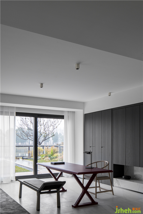 空間沉淀過去,滿足當下,承載未來,講述時間的故事。設計師以極簡的設計語言和表現(xiàn)形式,秉持“大宅至簡”的設計理念,將多余的東西剔除,希望為空間賦予更多的精神內(nèi)涵。