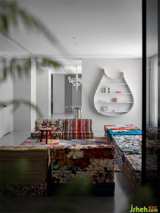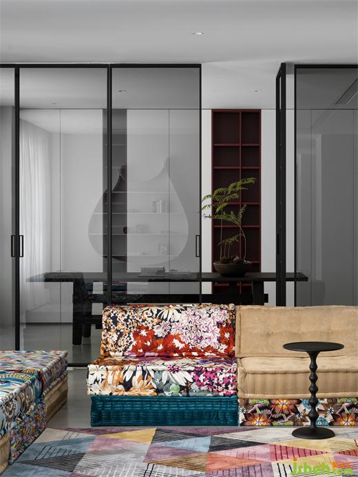 別墅裝飾二樓客廳選擇了意大利產(chǎn),由泰國(guó)設(shè)計(jì)師Hans Hopfer設(shè)計(jì)的可自由組合的”麻將“,你可以把”麻將“并成一組沙發(fā),坐在上面喝個(gè)下午茶,亦可以把它平鋪?zhàn)鳛橐粡埓玻瘋€(gè)午覺。沙發(fā)布料的材質(zhì)花色靈感來源于日本和服,將多元文化融合的概念體現(xiàn)得淋漓盡致。