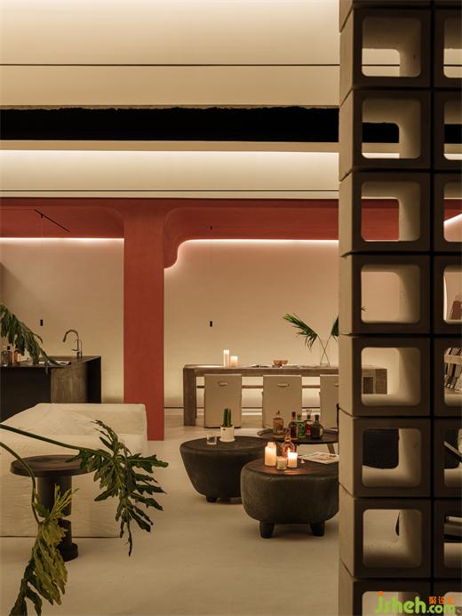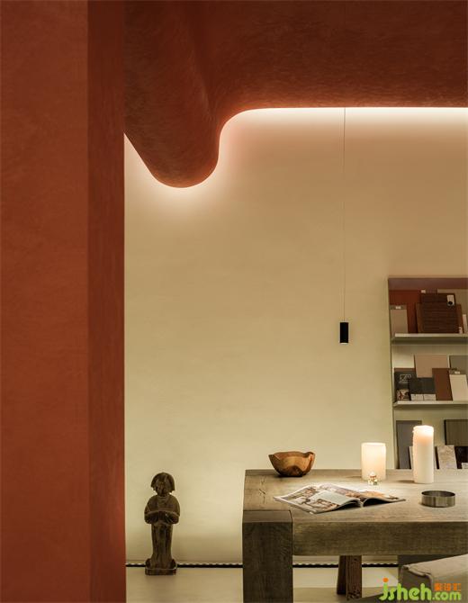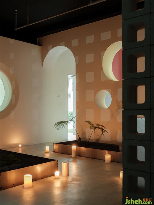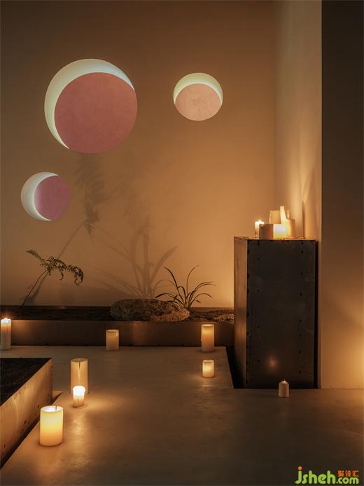 安靜的石頭和蘭草,靜靜沐浴著暖光,傳遞清新的自然山野氣息。上海辦公室設(shè)計內(nèi)部色彩與輪廓若隱若現(xiàn),極具空間層次與縱深感。緩步移動,搖曳的燭火安靜燃燒,仿佛承載愿望的燭燈浮于流水流向遠方,燭光將影子投影在墻面,朦朧神秘,動中有靜,既有自然的靈動之氣,又充滿了虔誠的儀式感。