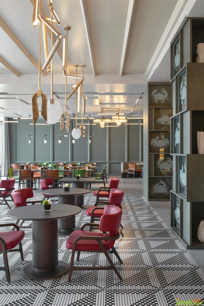 湖水緩緩蕩漾,舒緩的氛圍讓人拾獲寧?kù)o。酒店設(shè)計(jì)以蟹腳為原型的燈飾,增添時(shí)尚趣味的空間調(diào)性。