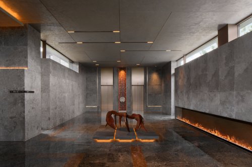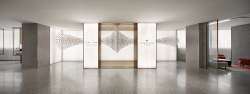 抵達大堂將青磚黛瓦、園林亭臺的濟南傳統(tǒng)四合庭院解構,酒店設計藉由窯變產(chǎn)生細微差別的多重色澤陶片表達,不同光線不同角度產(chǎn)生奇妙差異化觀感,形成空間第一處記憶點,構建出極致的、具象的沉浸式歸家體驗。