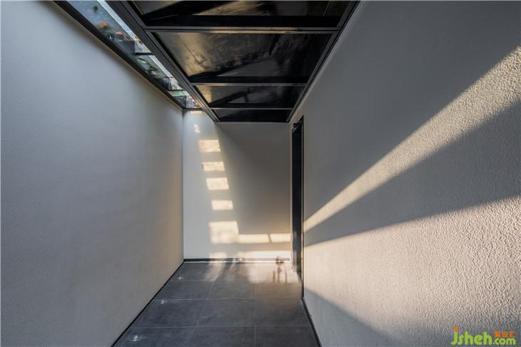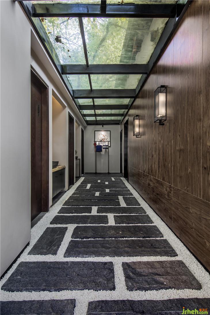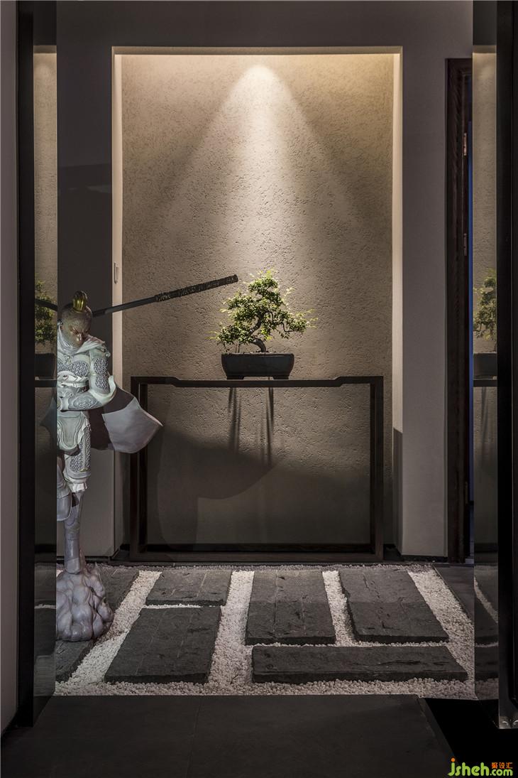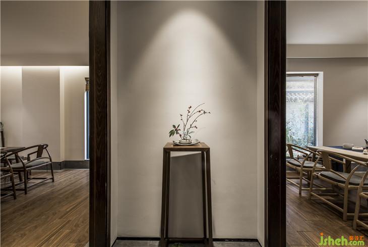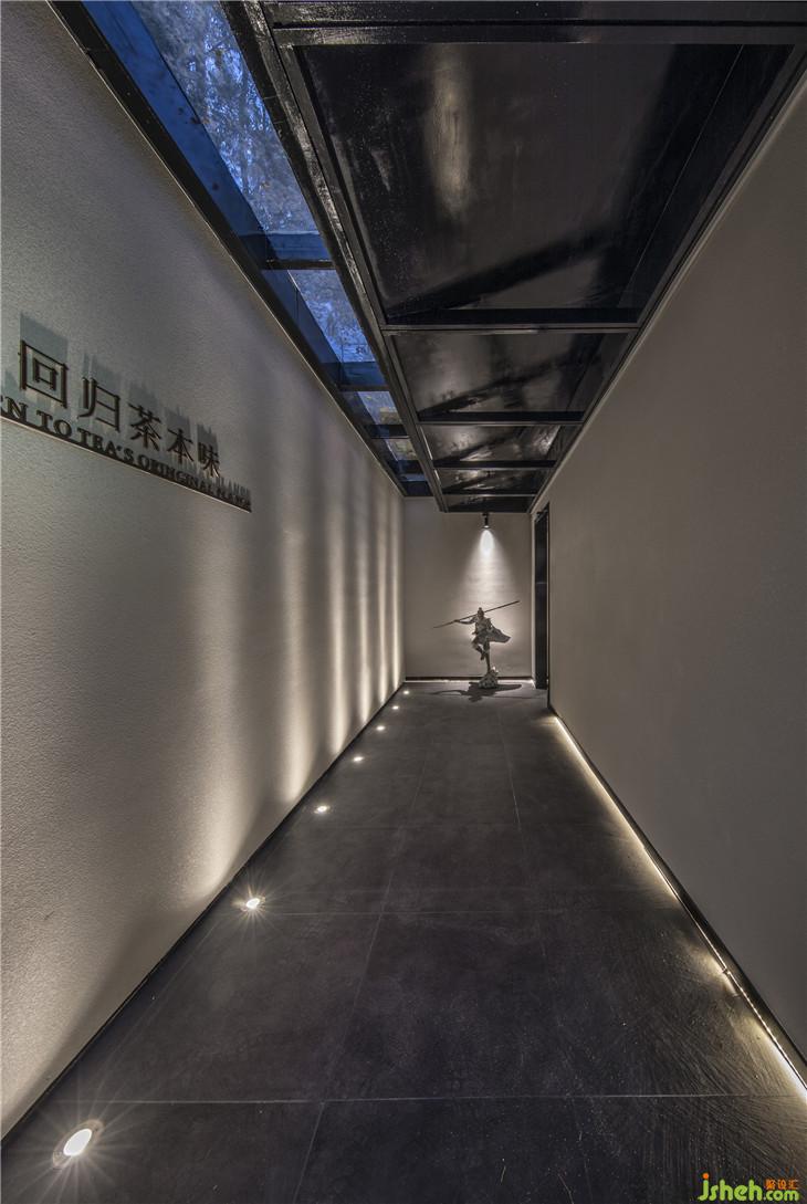 入口走道以白墻灰磚取拙樸之姿態(tài),斑駁感人的光線落下,讓其中的人獲得“靜謐中探尋”的行走體驗?!盎貧w茶本味”理念的融入,也提醒著人們,準(zhǔn)備好迎接那一道茶香。正如作家林清玄所說,人生需要準(zhǔn)備的,不是昂貴的茶,而是喝茶的心情。