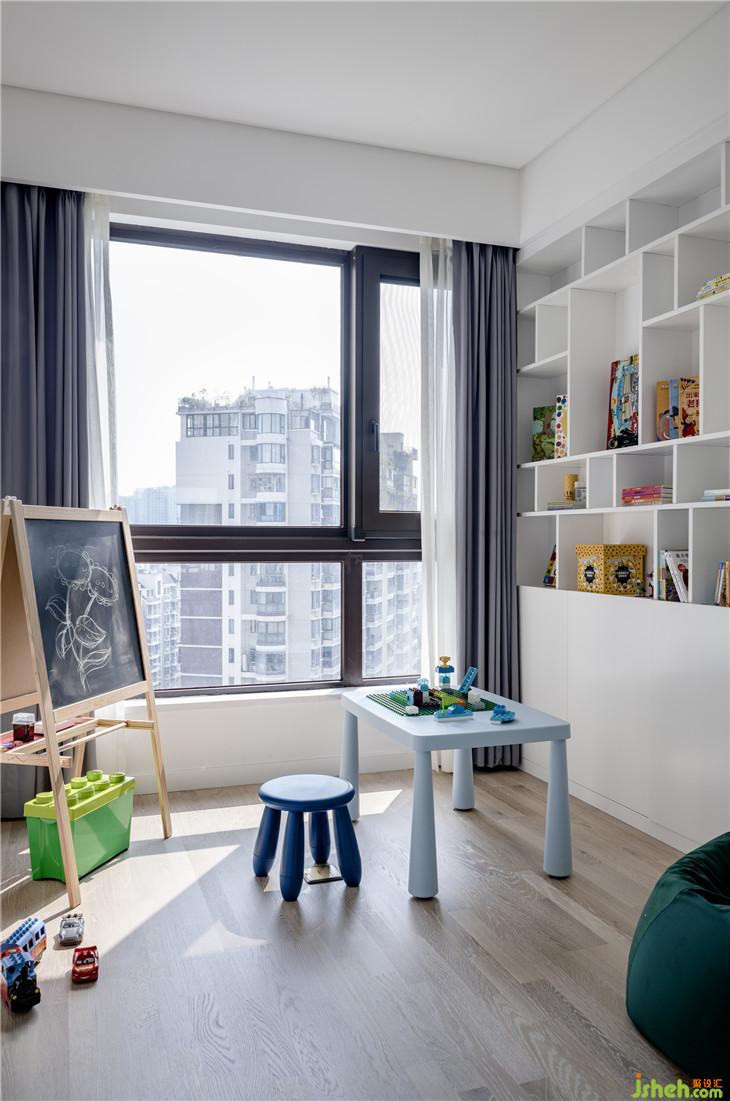 餐廳一側(cè),規(guī)劃了一個(gè)獨(dú)立的兒童娛樂(lè)空間。玻璃門(mén)以分而不隔的方式,創(chuàng)造了更為多元的生活場(chǎng)景,讓居住者有機(jī)會(huì)開(kāi)發(fā)更多美好的生活體驗(yàn)。