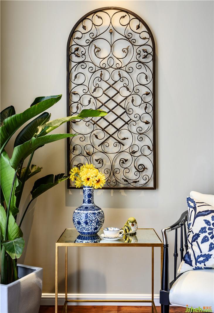 客廳,設(shè)計師在美式風(fēng)格與異域人文風(fēng)情中提取精神內(nèi)核,簡化線條,用豐富的軟裝配飾賦予空間精致、靈動的生命力。