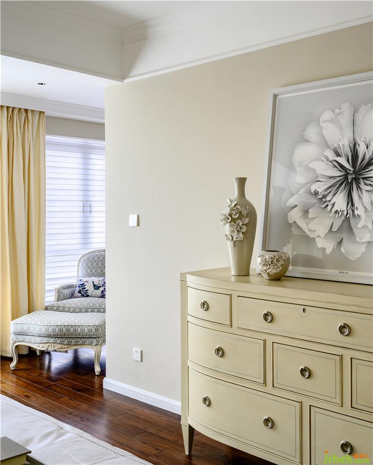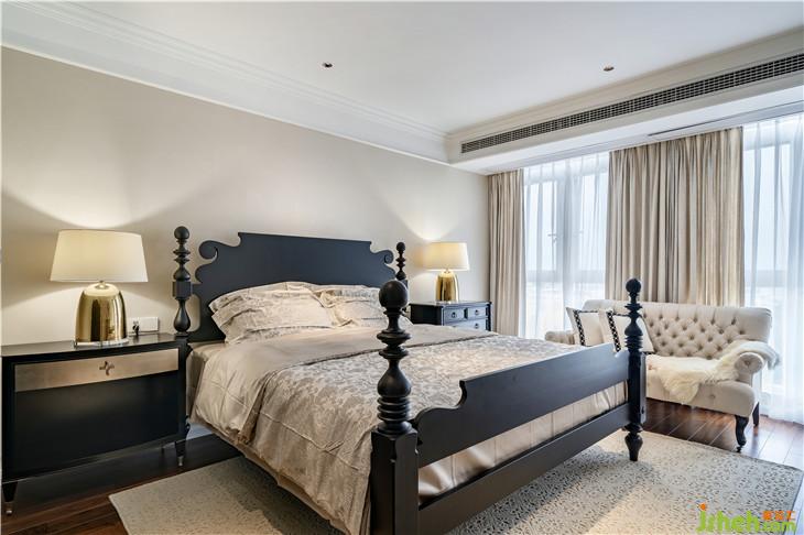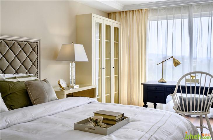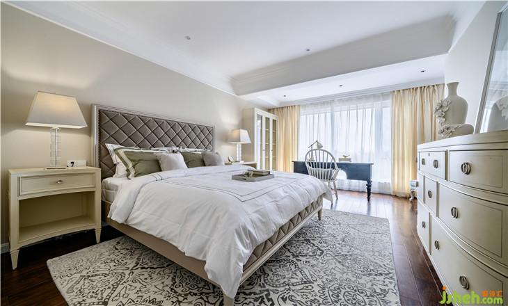 主臥,大幅留白和素雅的軟裝讓空間輕盈而舒適,將美式的優(yōu)雅恬靜發(fā)揮得淋漓盡致。