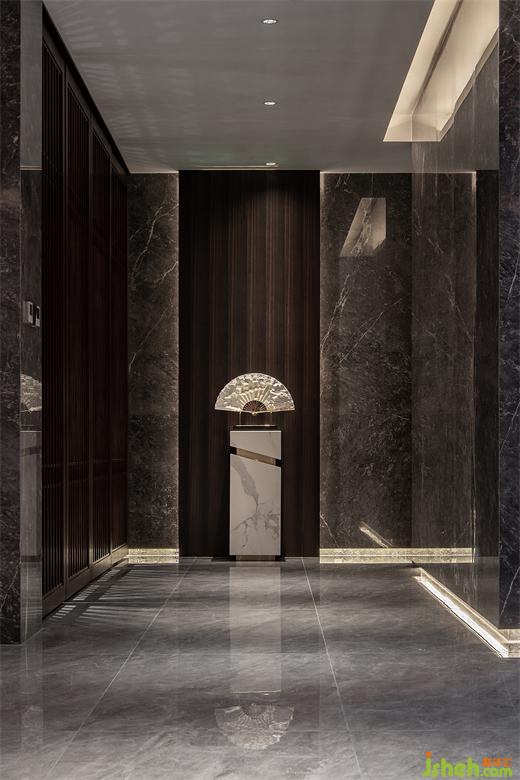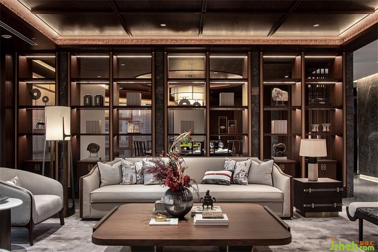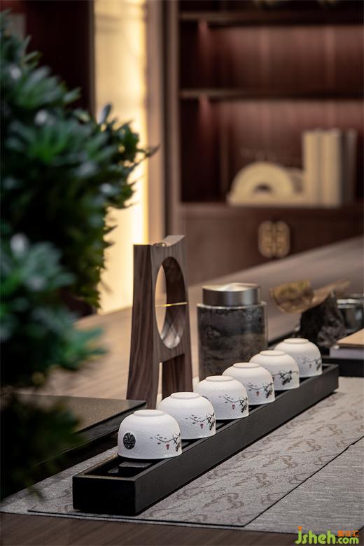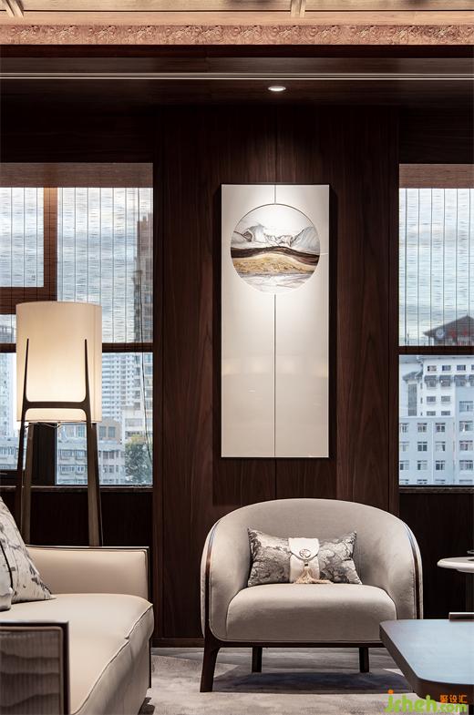 本項(xiàng)目主要以員工辦公和私人接待為主,會(huì)所設(shè)計(jì)因使用面積有限且功能較多,平面設(shè)計(jì)主要強(qiáng)調(diào)人與空間的相互影響,以及空間與空間的通透感,做到功能多樣的同時(shí)視覺(jué)也放大,推開(kāi)中式如意大門(mén),一眼看見(jiàn)半通透的中式月亮造型,引一束自然光到門(mén)廳,入戶右邊置入了室內(nèi)植物和水景,左邊墻面弧形木板和石材結(jié)合,增強(qiáng)了入戶的儀式感,藝術(shù)過(guò)廳,簡(jiǎn)潔利落,主要以布藝和深色木飾面結(jié)合,以古建筑作為陳設(shè),以體現(xiàn)中式建筑文化之美,藝術(shù)品作為空間品質(zhì)和格調(diào)不可或缺,品茶區(qū)5.8米的大茶臺(tái),視覺(jué)和功能的極大滿足,大體量的序列關(guān)系強(qiáng)化客人在此的儀式感,造型似迎客的羅漢松(活植)增加了空間的生命力,在品茶的同時(shí)可與會(huì)客廳空間共享,彰顯空間的大氣感,若接待客人較多,可滿足人與空間以及人與人之間的互相觀察和交流,廚房、衛(wèi)生間的隱形門(mén)和造型設(shè)計(jì),讓會(huì)客廳保留了對(duì)稱(chēng)設(shè)計(jì)的美感,大幅的展示架貫穿整個(gè)空間,藝術(shù)品茶具的呈現(xiàn)。