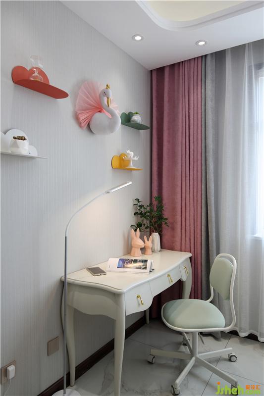 女孩房小清新色系及童趣的墻面裝飾,打造出專屬空間小主人的童話烏托邦,少兒童真,一顰一笑勾勒出溫柔的世間多姿。