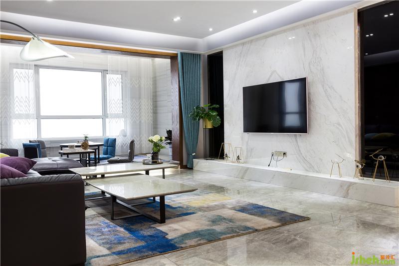 在客廳的設(shè)計中,白色暗紋大理石背景墻處理相當(dāng)簡潔而富品味,自然的木質(zhì)色調(diào)使居室充滿休閑的氛圍,高檔的黑色皮質(zhì)沙發(fā)、精致的金屬飾品、地毯等元素相互搭配、協(xié)調(diào),彼此之間互作輔助,從材質(zhì)到色彩具有強烈的港式風(fēng)情, 讓整個客廳不會顯得單調(diào),總體上給人一種自然簡潔、和諧寬敞的感覺。室內(nèi)設(shè)計師