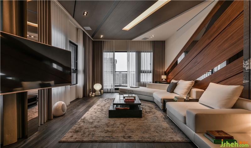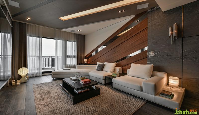 左岸依山傍水,為引入了大量的天然采光與屋外風景,客廳以敞開的落地窗連接室內(nèi)外,并將電視懸浮于窗景上,讓戶外風景無限延伸。公共空間透過線條的延伸營造出場域的開闊感與廣度,從天花板延續(xù)到長形沙發(fā),讓整個空間產(chǎn)生「內(nèi)在的秩序」,進而制造出空間的張力。利用角度的雕砌與曲線塑造手法,讓整個空間中添增多元面向與穿透感;透過豐富的細節(jié)使設計元素相互碰撞、融合并融會于場域之中。將收納柜融入深具藝術性的墻面中,兼具實用與設計感,使機能與美感相輔相成。