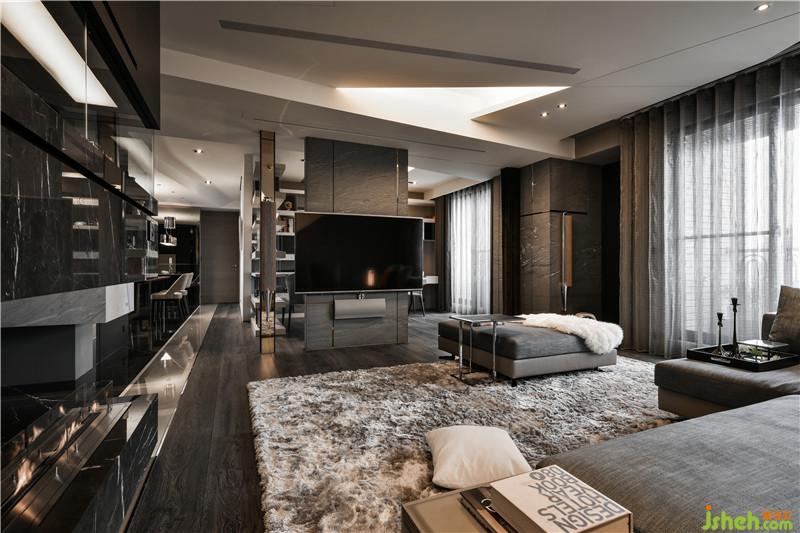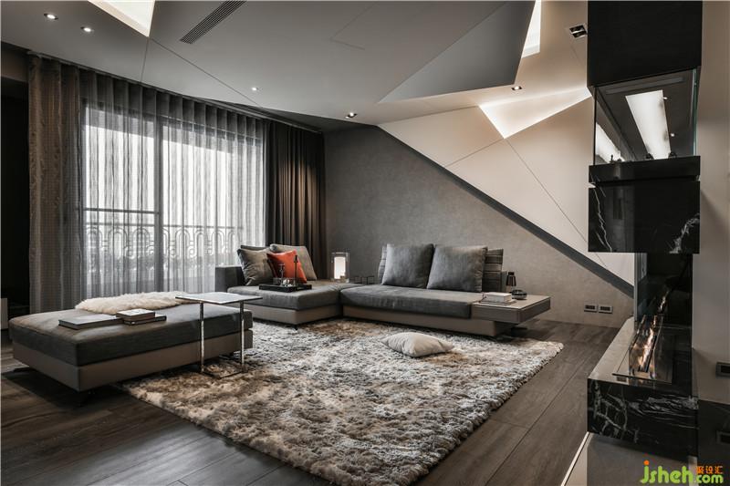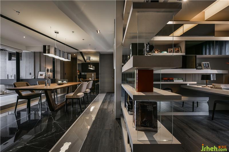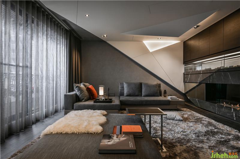 傾斜且富線條變化的天花板與墻面走勢(shì),結(jié)合著各種光線的折射,而帶給屋內(nèi)極富設(shè)計(jì)感的生動(dòng)氣質(zhì),與此同時(shí)也透過(guò)在個(gè)線條中的巧妙規(guī)畫,一舉結(jié)合了收納、展示、生活實(shí)用與空間美學(xué)的多重目的。除了各種材質(zhì)特性間的豐富對(duì)話,細(xì)致的鑲嵌工法以及精準(zhǔn)計(jì)算的接合線條,亦為屋內(nèi)中刻畫出各種隱匿而優(yōu)雅的美學(xué)肌理,并以此兼顧實(shí)用與美學(xué)的多重,提出我們對(duì)居家空間的嶄新見解。