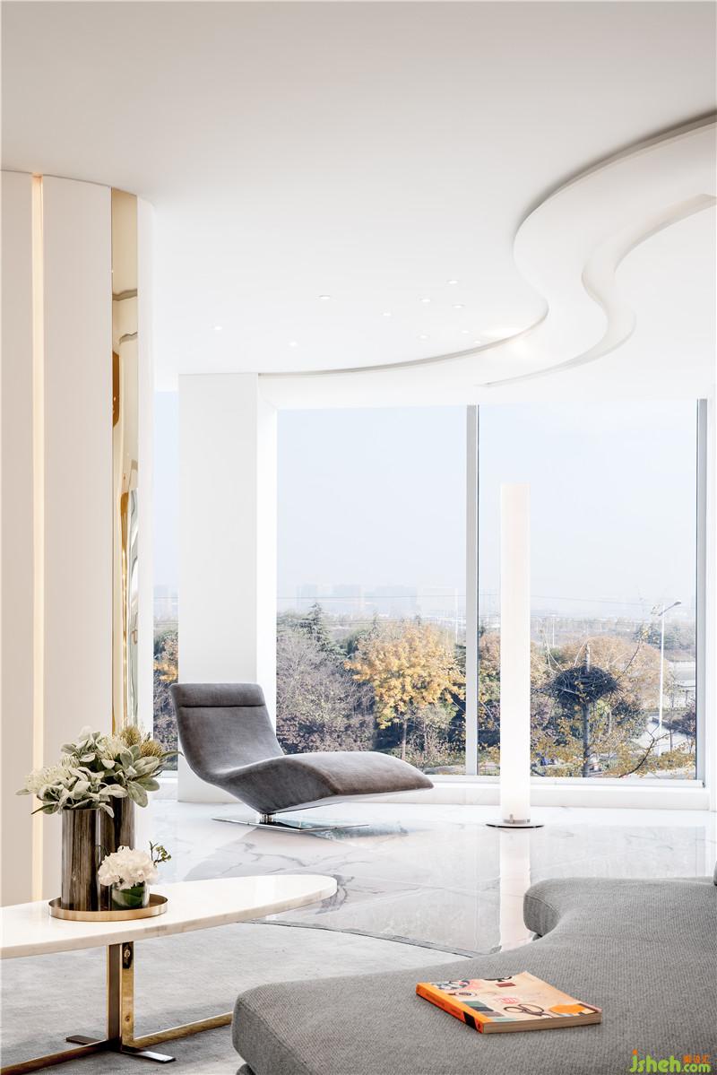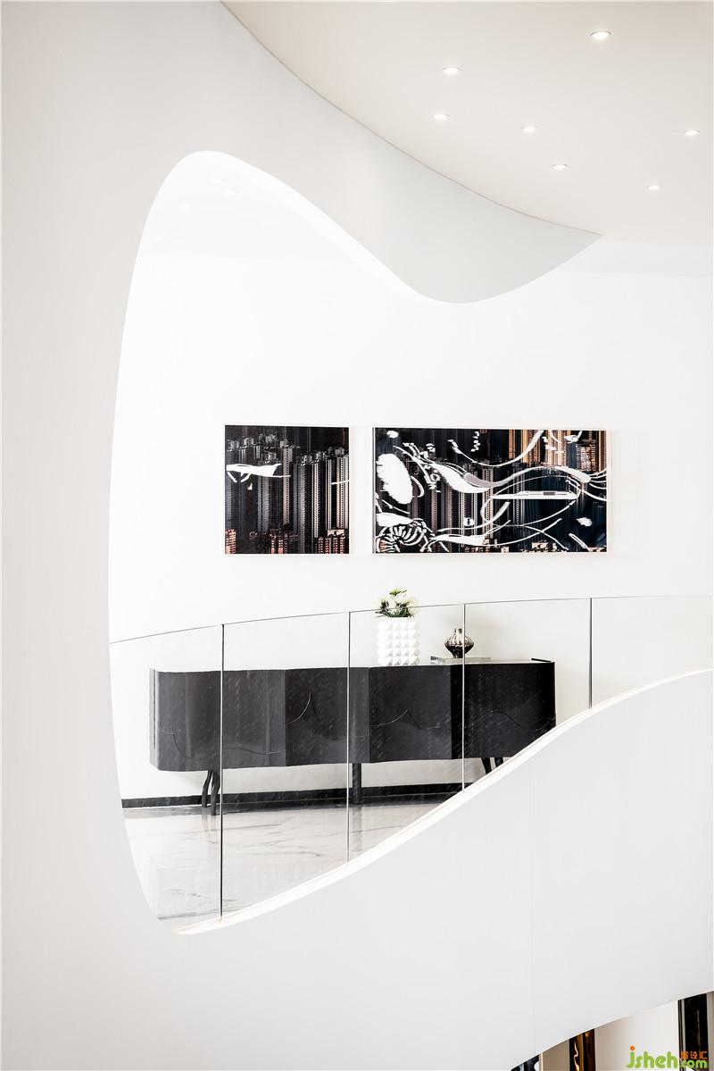 多重靈動(dòng)的弧線(xiàn),打破既有城市空間的想象,解構(gòu)當(dāng)下風(fēng)潮。白色空間的無(wú)界表達(dá),與旋轉(zhuǎn)而上的圓弧階梯,制造出一種云上漫步的錯(cuò)覺(jué),將日常平凡的視角移高到云巔。大師設(shè)計(jì)的尺度開(kāi)展敘事的藝術(shù),靜謐清水連接室內(nèi)和戶(hù)外,展開(kāi)光與影的敘事,隱藏鏡觀世界的另一個(gè)平行空間。裝修公司