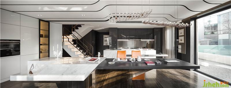 曲線與直線自然流淌,呈現(xiàn)出餐廳干凈優(yōu)雅又前衛(wèi)時(shí)尚的質(zhì)感。樣板房設(shè)計(jì)