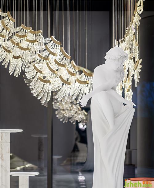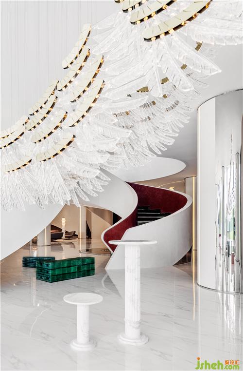 如水波般利落流暢的線條大氣簡練傾斜而下,為塑形空間憑添一份華麗,自然流露的藝術(shù)魅力恰到好處地演繹著自然與藝術(shù)的平衡。