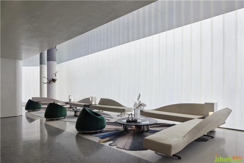 簡潔流暢的線條無界蔓延,一種無垠廣闊的空間感悄然生發(fā),未來感撲面而來,咖啡清吧、商務(wù)洽談化作故事,每一出對話皆顯得意味宏大。