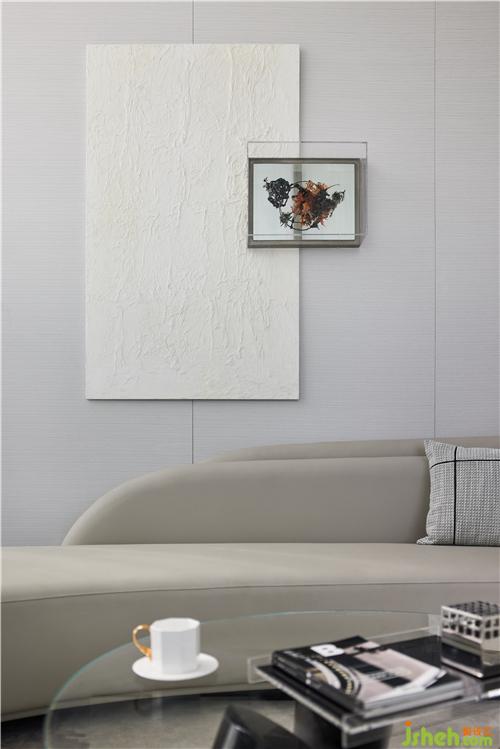 米白色皮質(zhì)長條沙發(fā)臨墻而立獨處一隅。細(xì)膩的流線與圓形石材茶幾輝映成趣,一體化剪裁工藝在留白的藝術(shù)場域內(nèi),游離出獨有的美學(xué)姿態(tài)。帶有些許科技感的家居選擇,變革性的前衛(wèi)設(shè)計,將充滿理性的曲線建構(gòu)面與感性的精神思維融會貫通。材質(zhì)與色彩的純粹性,隨著動線漸進演化。