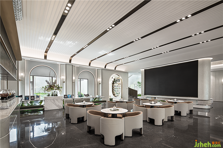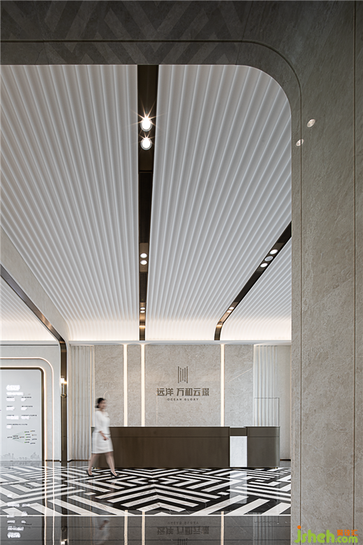 遠洋萬和云璟設(shè)計風(fēng)格定位“現(xiàn)代都市摩登”,結(jié)合“云璟”二字所蘊含的溫柔與優(yōu)雅,營銷中心設(shè)計引用青島的“水”文化作為設(shè)計語言的提取,在空間中穿梭與游戈。汲取新裝飾藝術(shù)的曲線設(shè)計形態(tài),融入都市煙火,與簡潔的當(dāng)代語匯交織,靜淌的線條與自然、文化相牽,延續(xù)典雅而細膩的質(zhì)感。