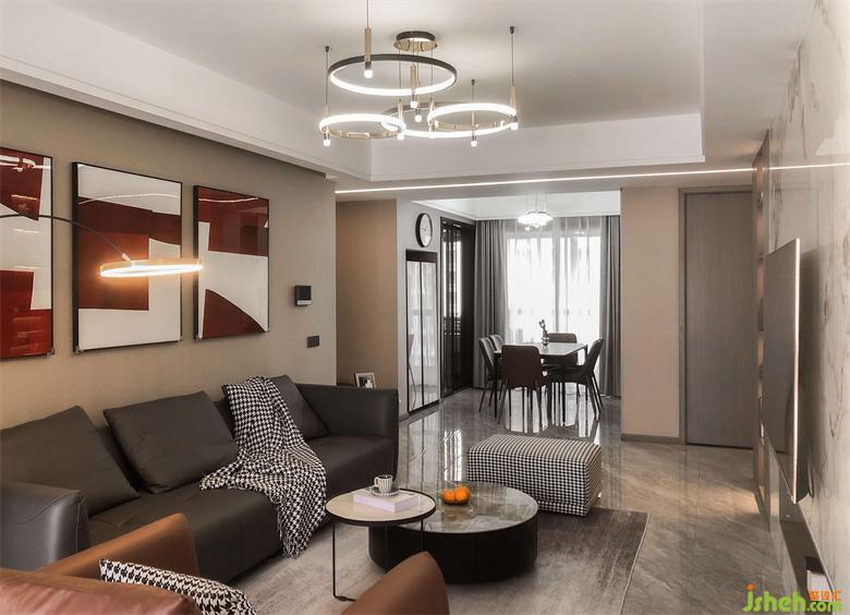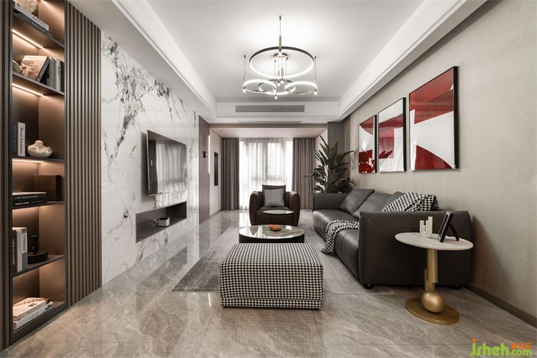 黑金 配色的燈飾精致不凡。私宅設(shè)計(jì)沙發(fā)和裝飾畫的那一抹眼里的紅打破了稍顯沉悶的氛圍,畫龍點(diǎn)睛,讓空間瞬間活潑靈動(dòng)起來(lái)。