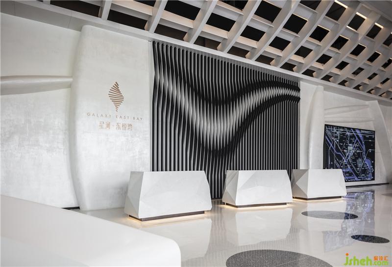 墻面的線條造型,拉伸整個空間,玻璃與金屬材質的碰撞,多樣的幾何外觀似不停變幻的宇宙,獨具魅力又恰到好處。