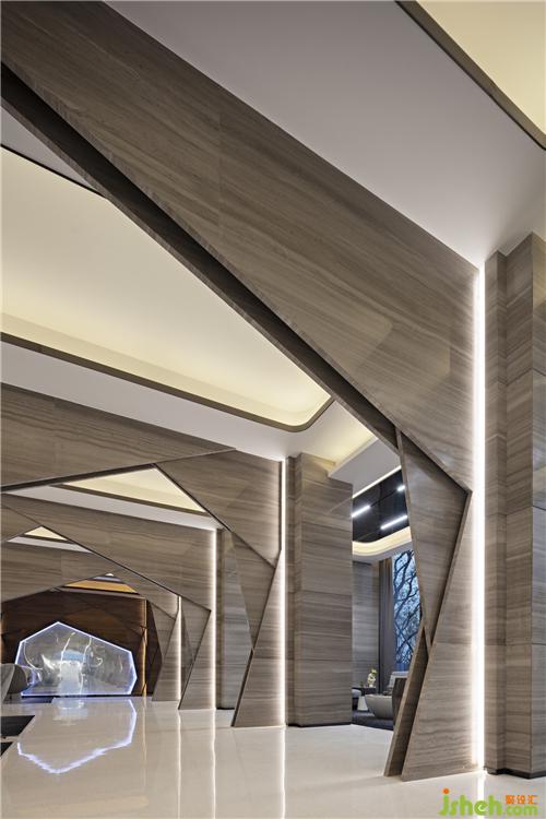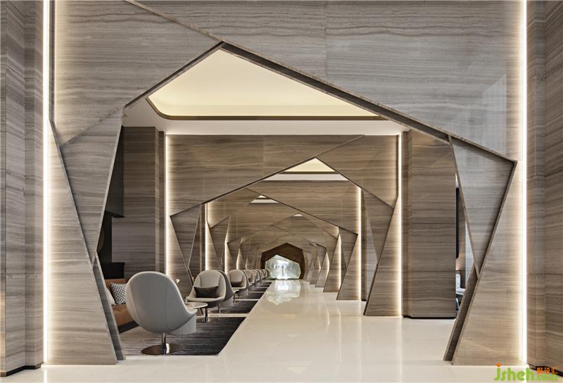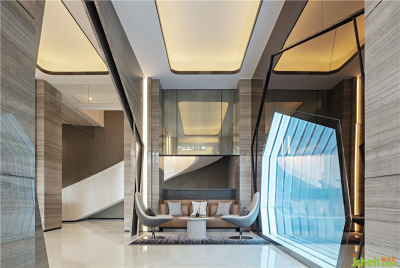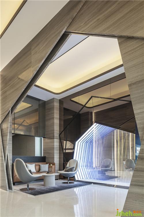 設(shè)計(jì)師大量運(yùn)用石材,不銹鋼金屬收邊,以簡(jiǎn)勝繁,簡(jiǎn)潔之中,凸顯其奢華品質(zhì)??臻g的獨(dú)特之處在于幾何形狀的拼接,融合。室內(nèi)設(shè)計(jì)師