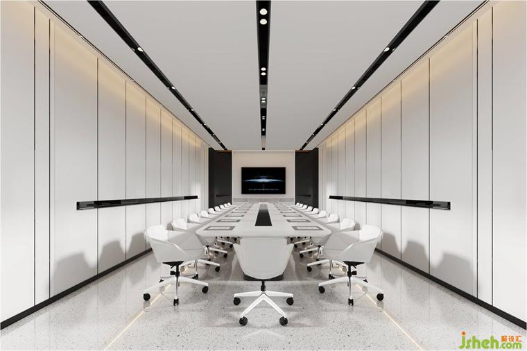 會議室運(yùn)用少量的設(shè)計(jì)語言,更能表達(dá)出深刻的設(shè)計(jì)內(nèi)涵。摒棄多余的裝飾,采用極簡的設(shè)計(jì)手法,并讓藝術(shù)元素與空間結(jié)合,從而書寫出現(xiàn)代化的辦公會所。