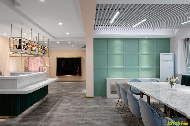 誰還能沒點少女心呢?走進大廳,整個人被馬卡龍配色的寬闊空間擊中,簡潔又別致,帶著一點點活潑和俏皮。沒有炫酷、也沒有壓抑。年輕人的集體轟趴就該輕松又清爽!