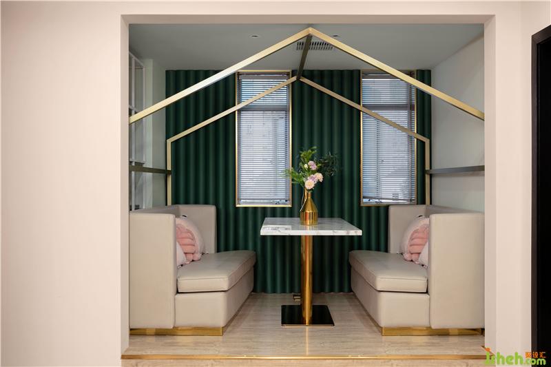 獨立休閑空間,可供5—7人同時休息。仙人掌式靠枕是個小亮點,有趣的同時又撞色幢的高級。